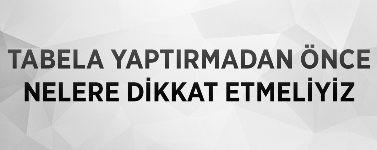 Tabela siparişi verirken dikkat etmeniz hususların başında projelendirme ve üretim bitiminde tabelanın montajı esnasında karşılaşılacak sorunlar ve tabelanın o bölgede farkedilebilirliği düşünülerek yükseklik mesafe ve yazı okunabilirliği konularında ciddi anlamda düşünülerek karar verilmelidir.